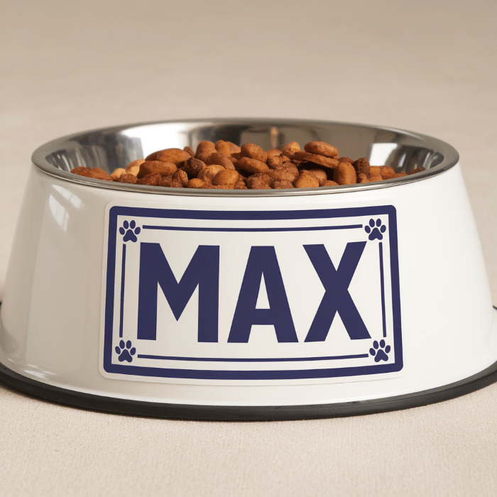 - Pegatinas personalizadas para cuencos y accesorios para mascotas